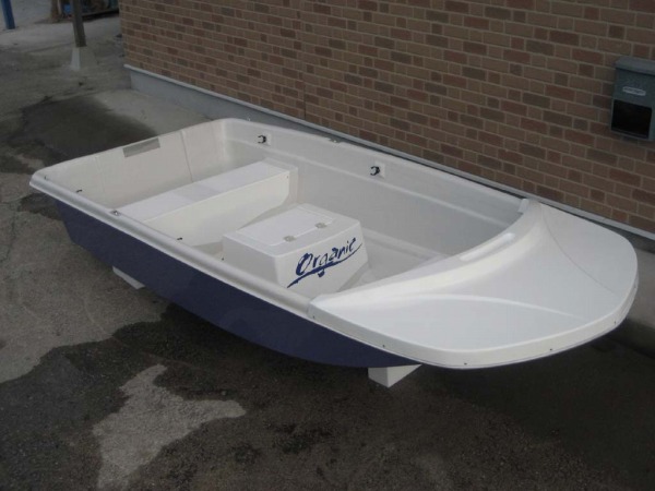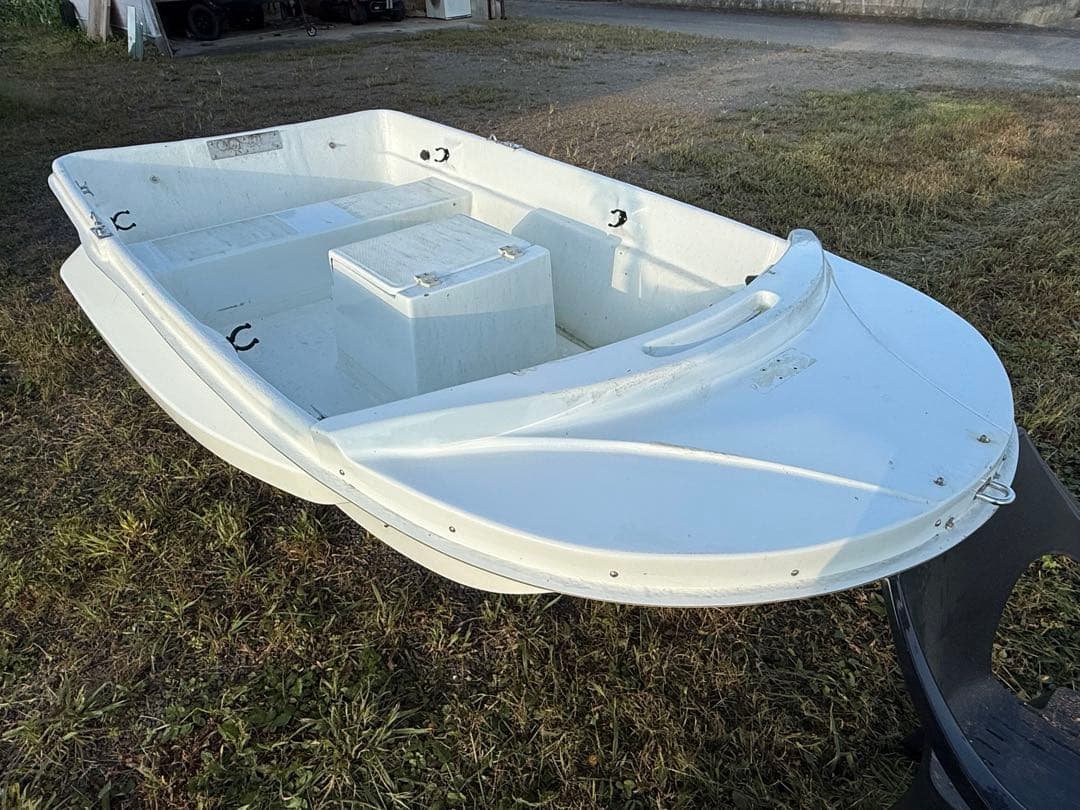 プチボーイはFRP製の小型ミニボートで、全長約2.47 mと非常にコンパクト。軽トラックや車への積載が容易で、手軽に釣りや水上遊びを楽しみたい人向け。オプションのサイドフロート装着で、2人乗りや立ち釣りでも安定感が増す実用的な一艇。